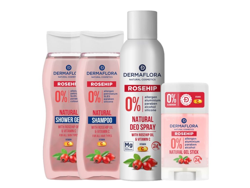 Olej z dzikiej róży (Rosa Canina Seed Oil) to łatwo wchłanialny składnik pielęgnacyjny i nawilżający skórę. Bogaty w niezbędne nienasycone kwasy tłuszczowe: omega-3 i omega-6. Ten ostatni przyspiesza gojenie się stanów zapalnych skóry, a pierwszy poprawia stan naczyń krwionośnych, krążenie krwi w skórze i działa naturalnie przeciwzapalnie. Dzięki wysokiej zawartości witamin E, C, B1, B2, B3 i K spowalnia starzenie się komórek, wspomaga procesy regeneracji i elastyczność skóry. Zawiera kwas transretinowy, prekursor witaminy A, którą organizm może przekształcić w witaminę A.