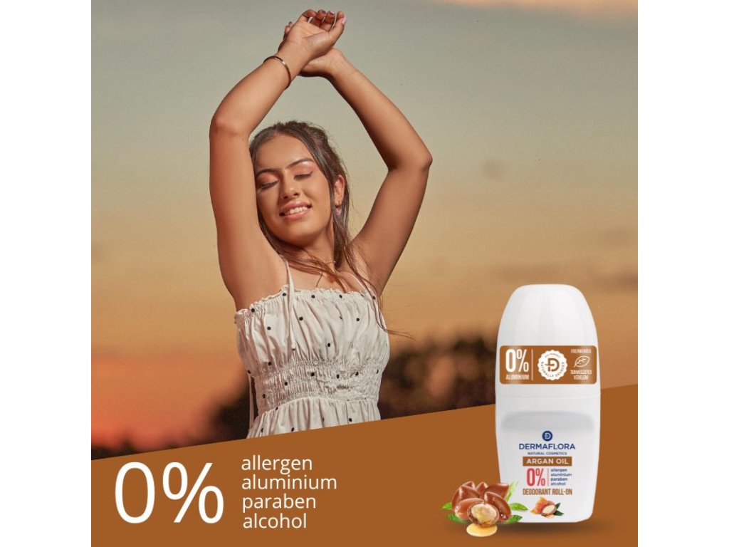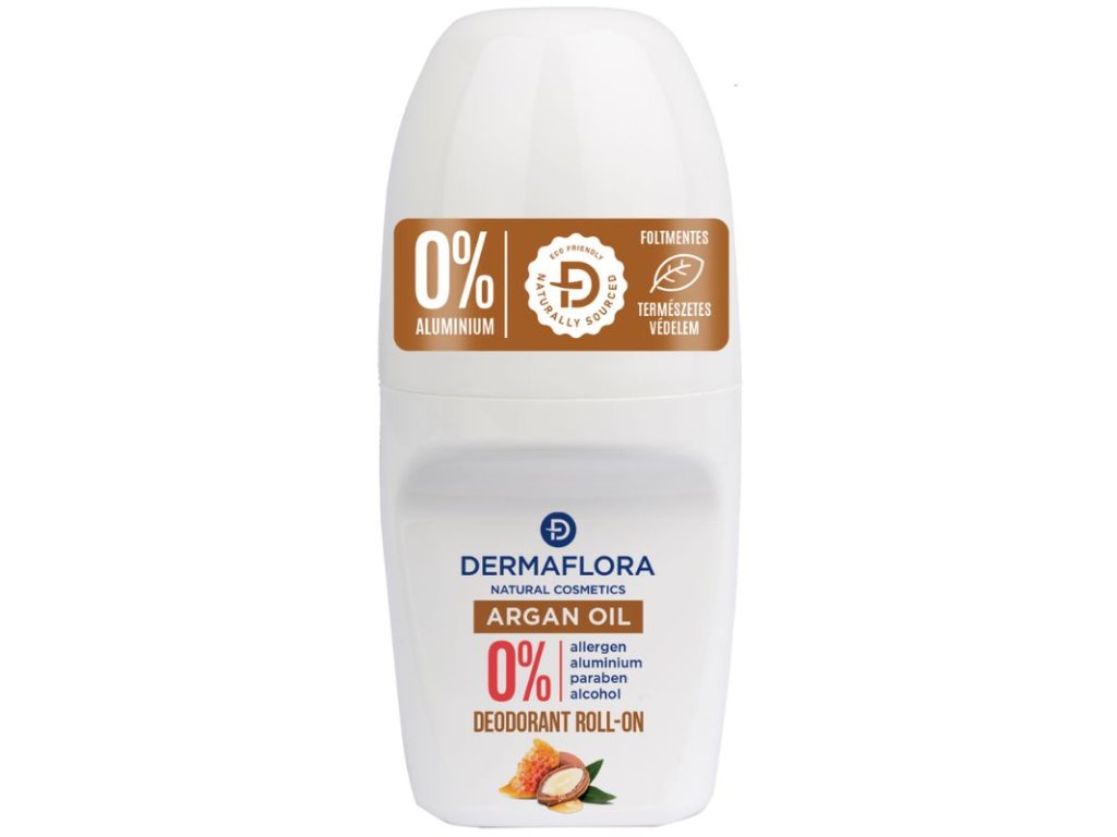 Naturalny roll-on Dermaflora z olejkiem arganowym i miodem. Dzięki tym dwóm składnikom dodatkowo nawilża skórę pod pachami, nie powodując podrażnień. Pomaga zapobiegać zapaleniu mieszków włosowych, podrażnieniom i przesuszeniu skóry. Pozwala skórze oddychać i pomaga przywrócić jej naturalny mechanizm obronny. Nie pozostawia plam na ubraniach.